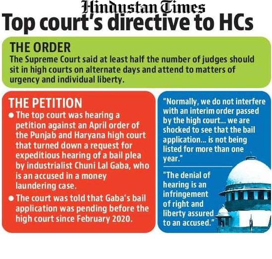 👨⚖️ Hear Them: SC says denial of bail hearing is a breach of people’s rights and orders HCs to ensure half the judges sat on alternate days to ensure hearing.