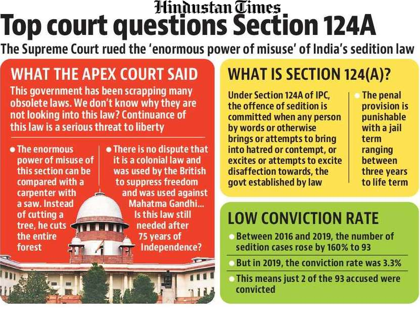 ➡️ Supreme Court has said the sedition law has enormous power of misuse