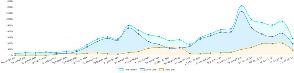 Coronavirus News: India may have underestimated its deaths due to Covid-19 with a new study reporting that there had been 2.7mn to 3mn deaths during the first two waves. (THIS STUDY IS YET TO UNDERGO SCIENTIFIC SCRUTINY). The pace of vaccinations has dropped to such an extent that the country may miss target for July.